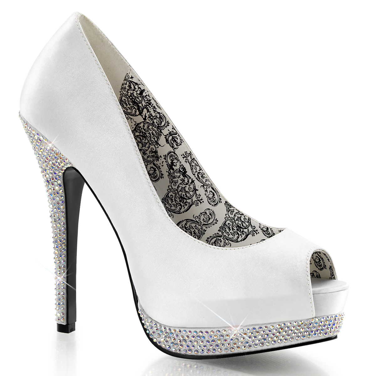 Białe czółenka z odkrytymi palcami na platformie z wysokimi obcasami