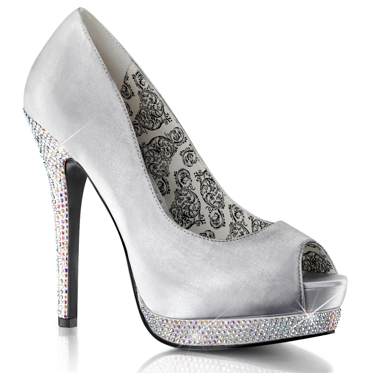 Srebrne czółenka z odkrytymi palcami na platformie z wysokimi obcasami