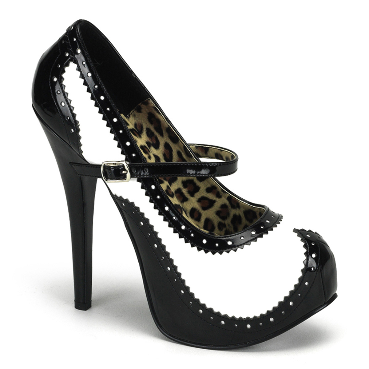 Błyszczące czarne czółenka z paskami na platformie z wysokimi obcasami