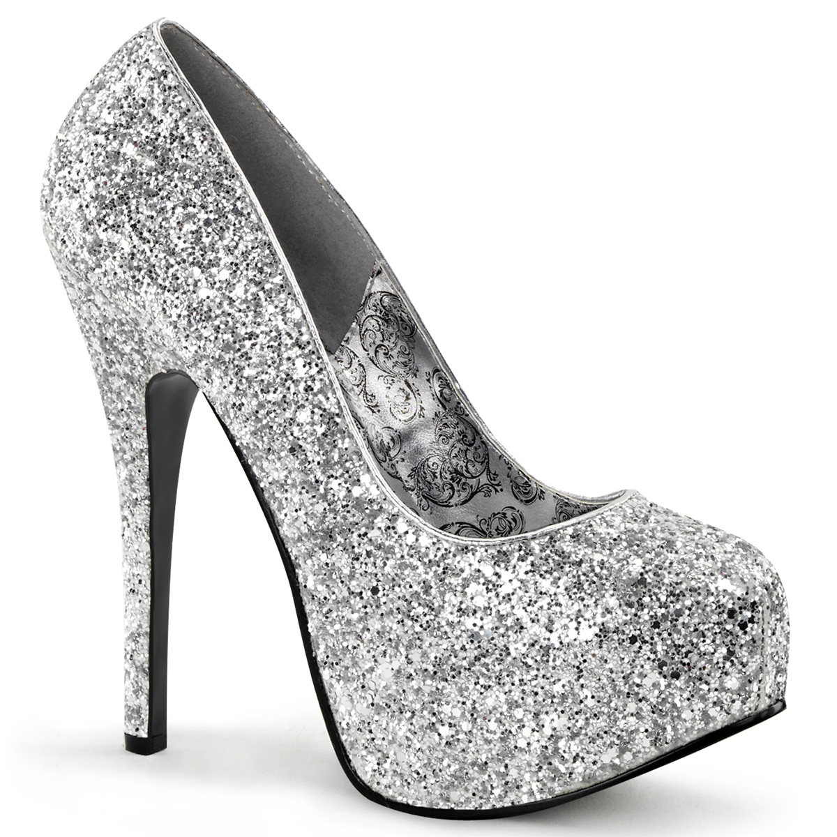 Srebrne czółenka na platformie z wysokimi obcasami