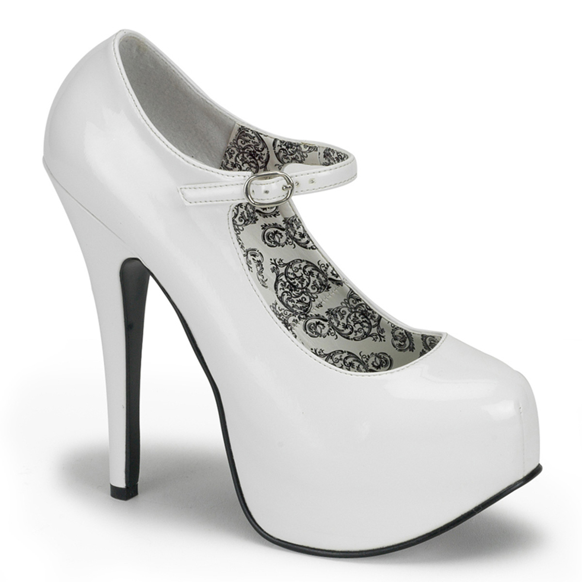 Błyszczące białe czółenka z paskami na platformie z wysokimi obcasami