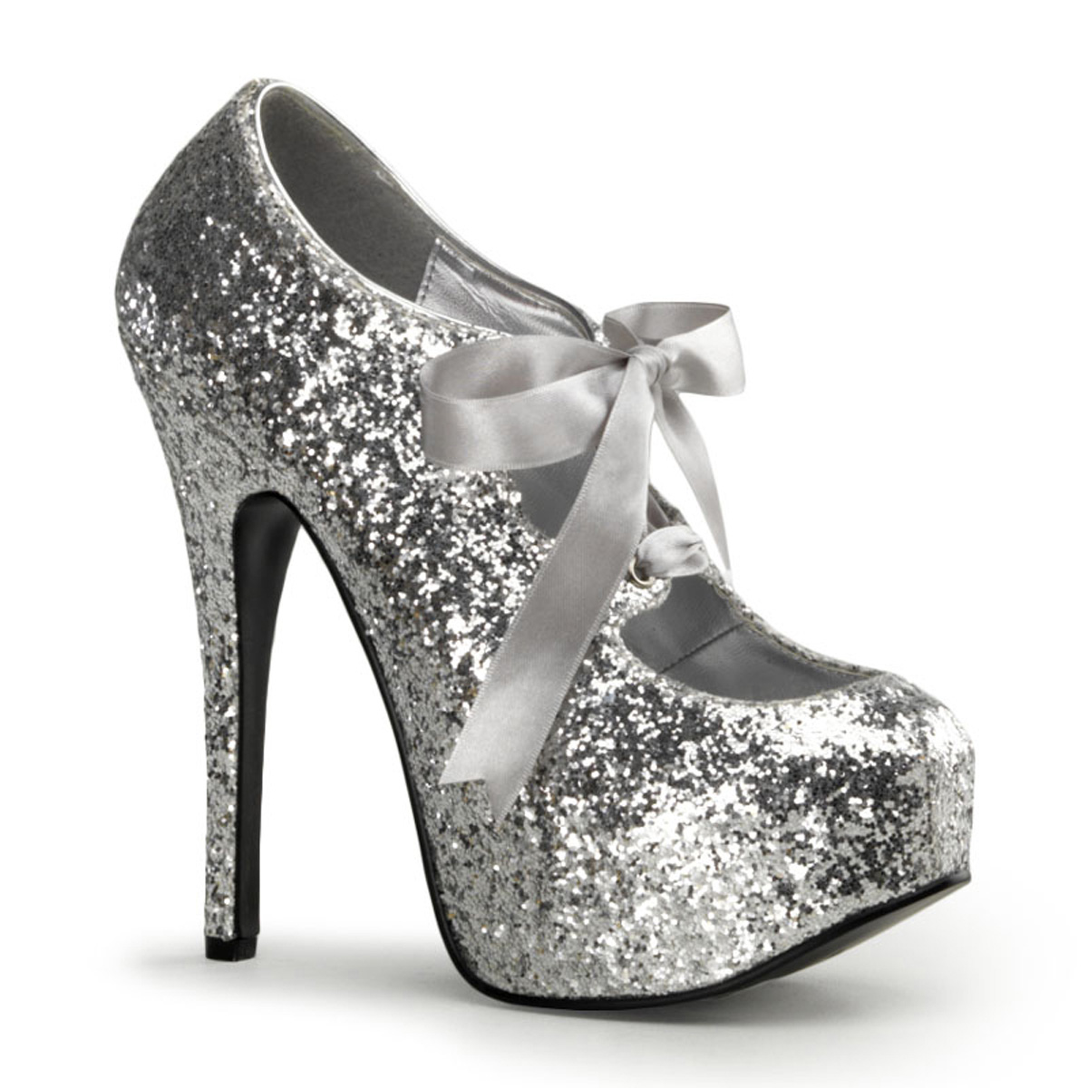 Srebrne czółenka z paskami na platformie z wysokimi obcasami