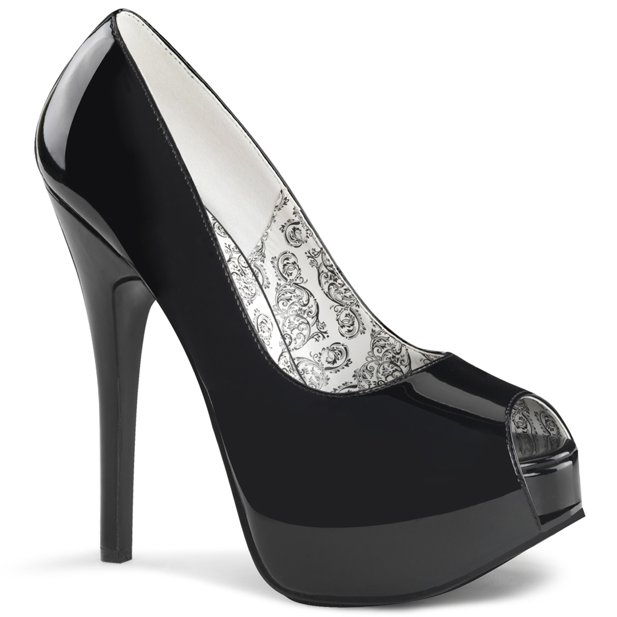 Błyszczące czarne czółenka z odkrytymi palcami na platformie z wysokimi obcasami