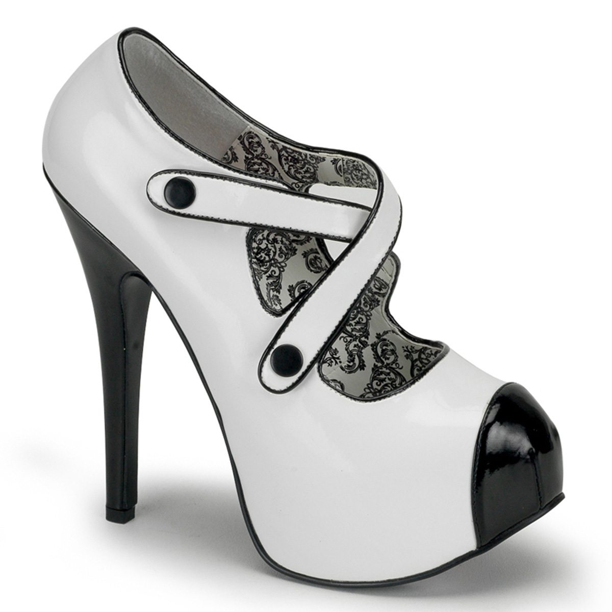 Błyszczące białe czółenka z paskami na platformie z wysokimi obcasami
