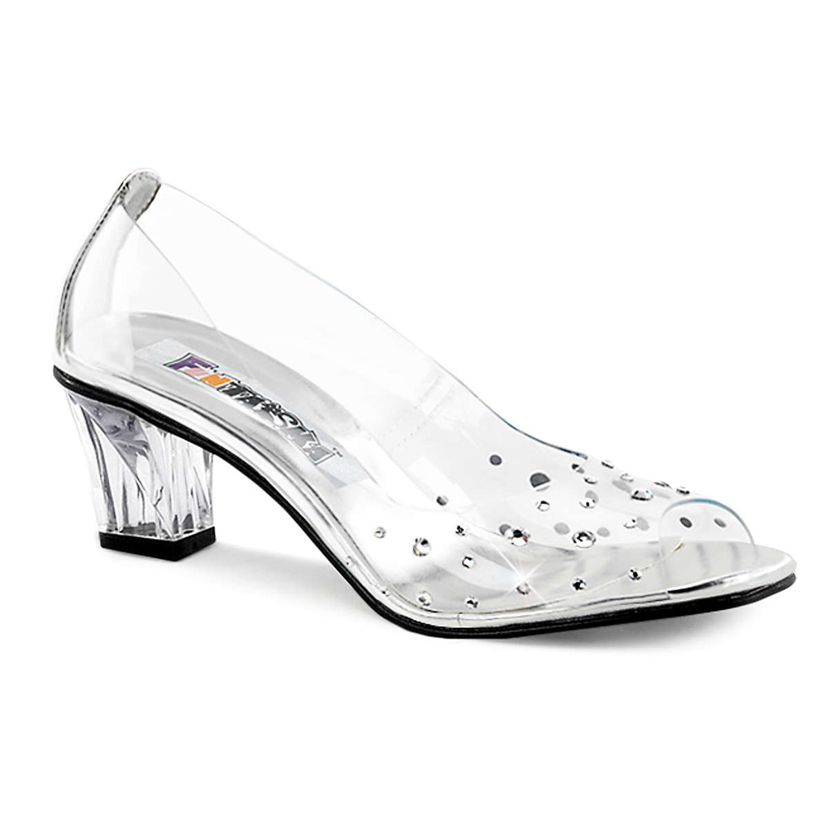 Przezroczyste czółenka z odkrytymi palcami z szerokimi obcasami