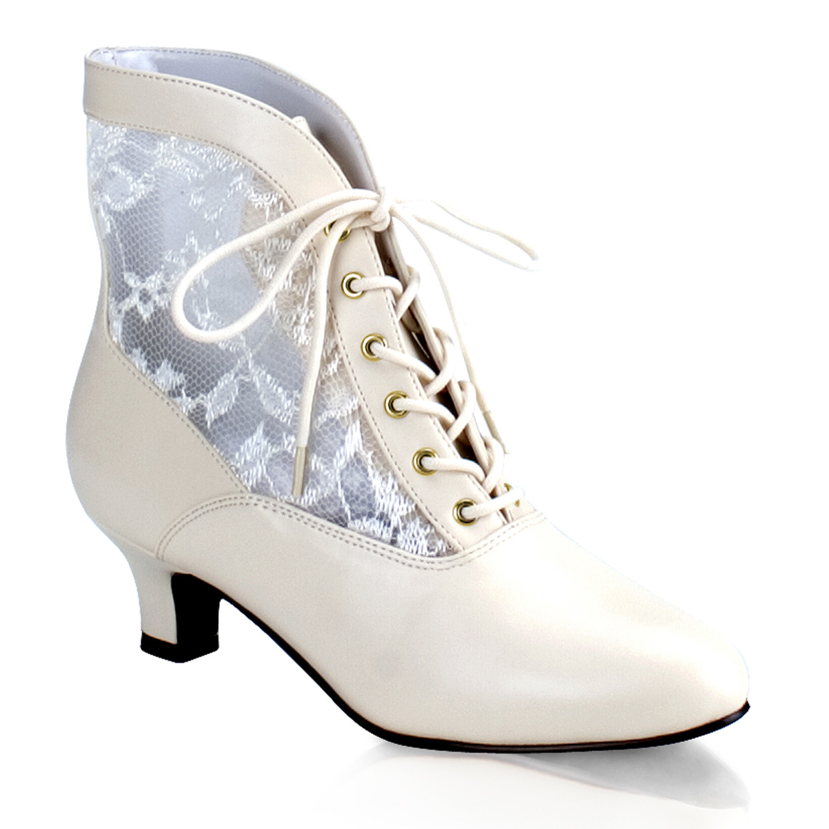 Białe wiktoriańskie botki z szerokimi obcasami