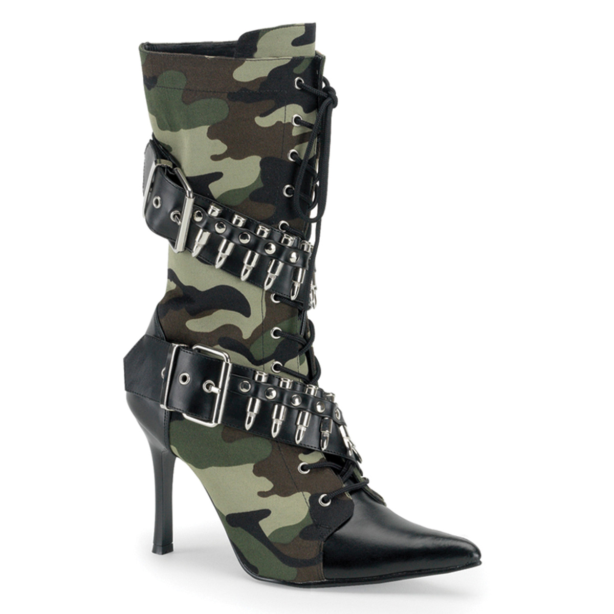 Błyszczące kamuflaż buty za kostkę na obcasie