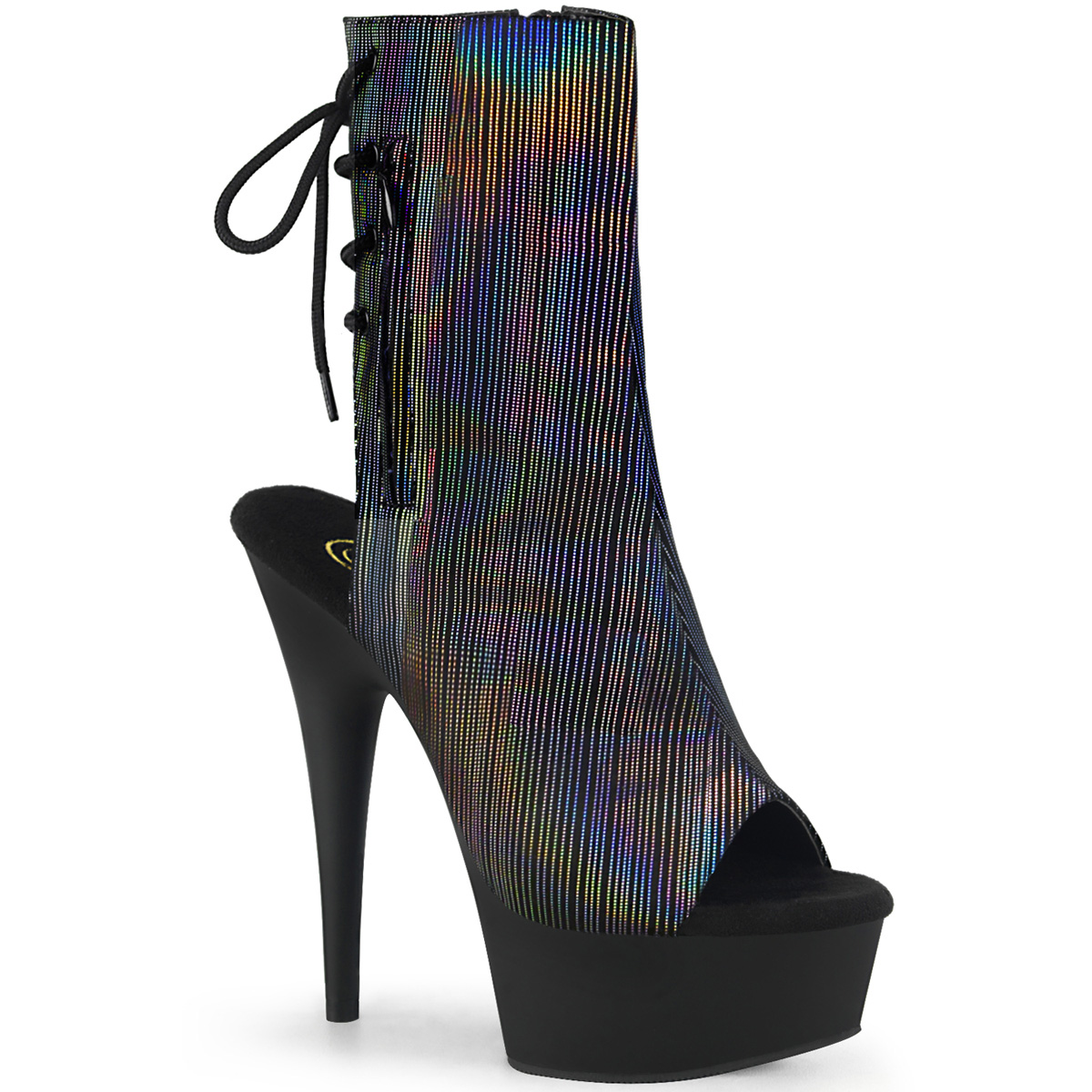 Czarne botki z odkrytymi palcami na platformie z wysokimi obcasami