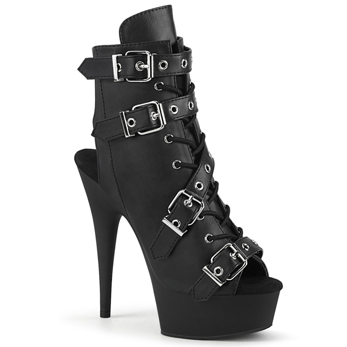 Czarne botki z odkrytymi palcami na platformie z wysokimi obcasami