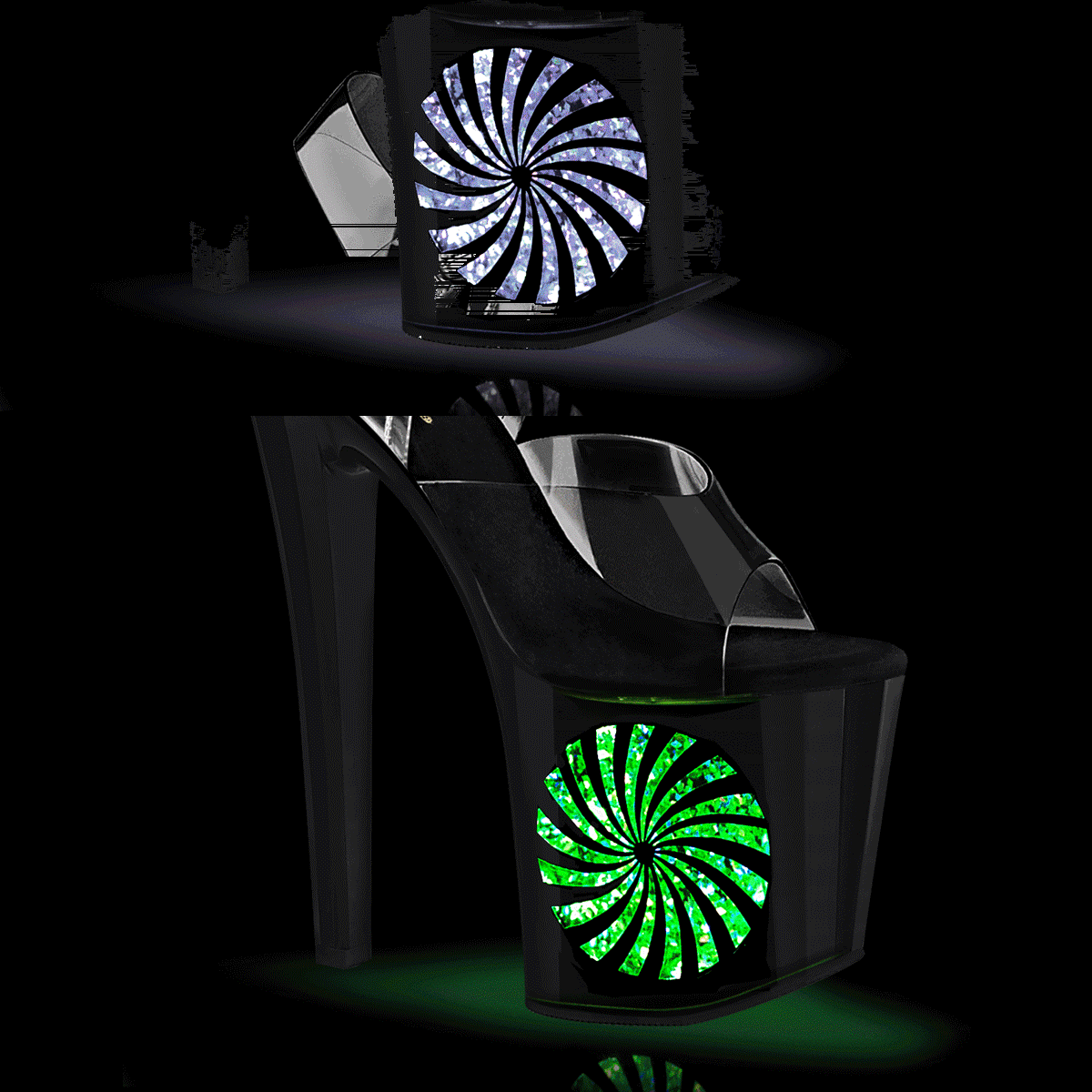 Przezroczyste świecące sandały na wysokiej platformie
