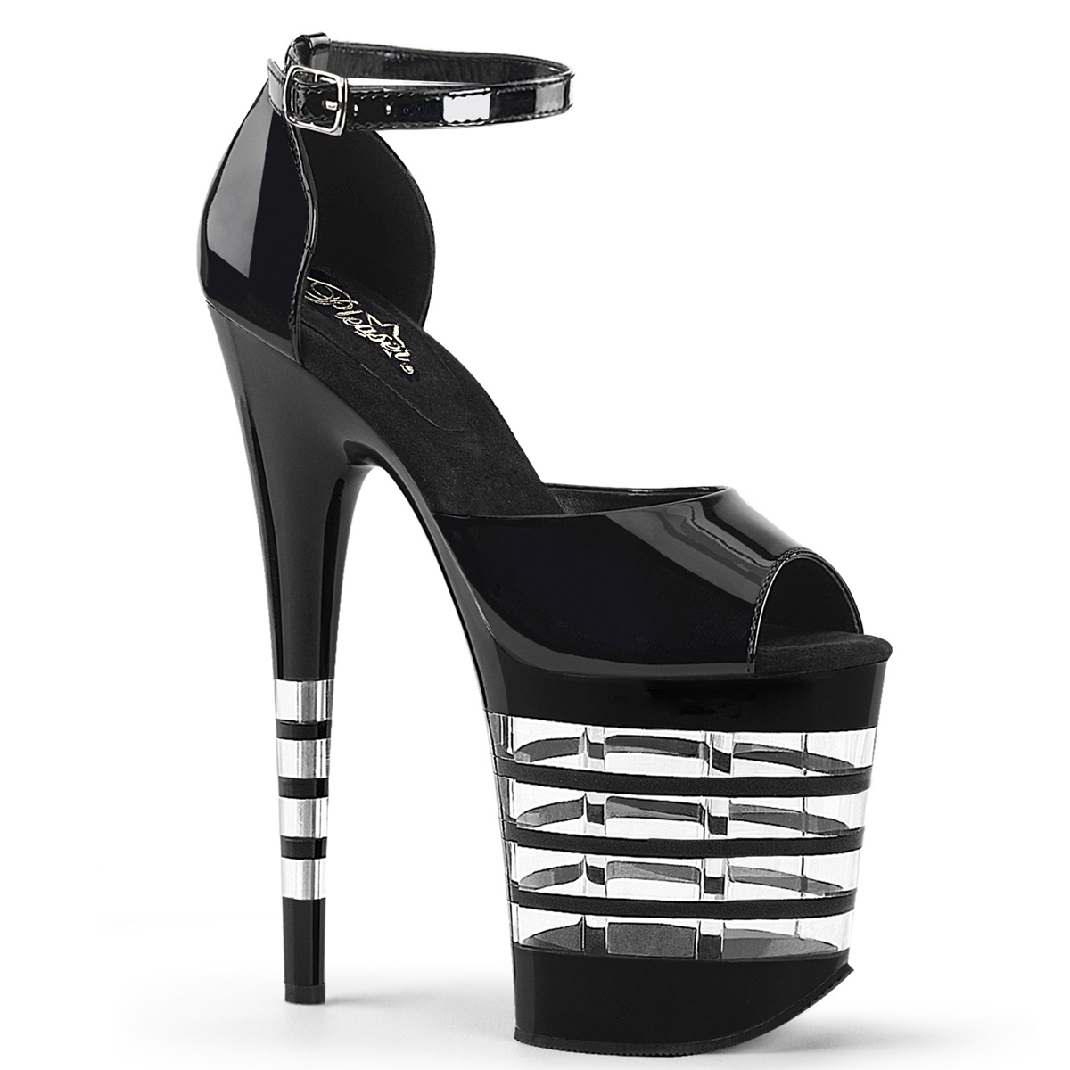 Błyszczące czarne buty z paskiem nad kostką na wysokiej platformie