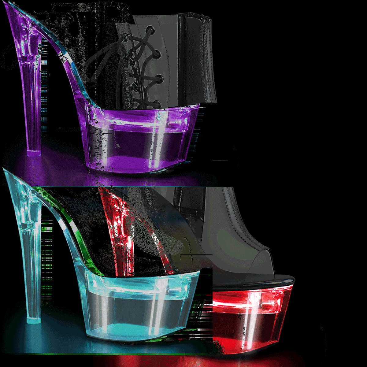 Przezroczyste świecące botki z odkrytymi palcami na wysokiej platformie