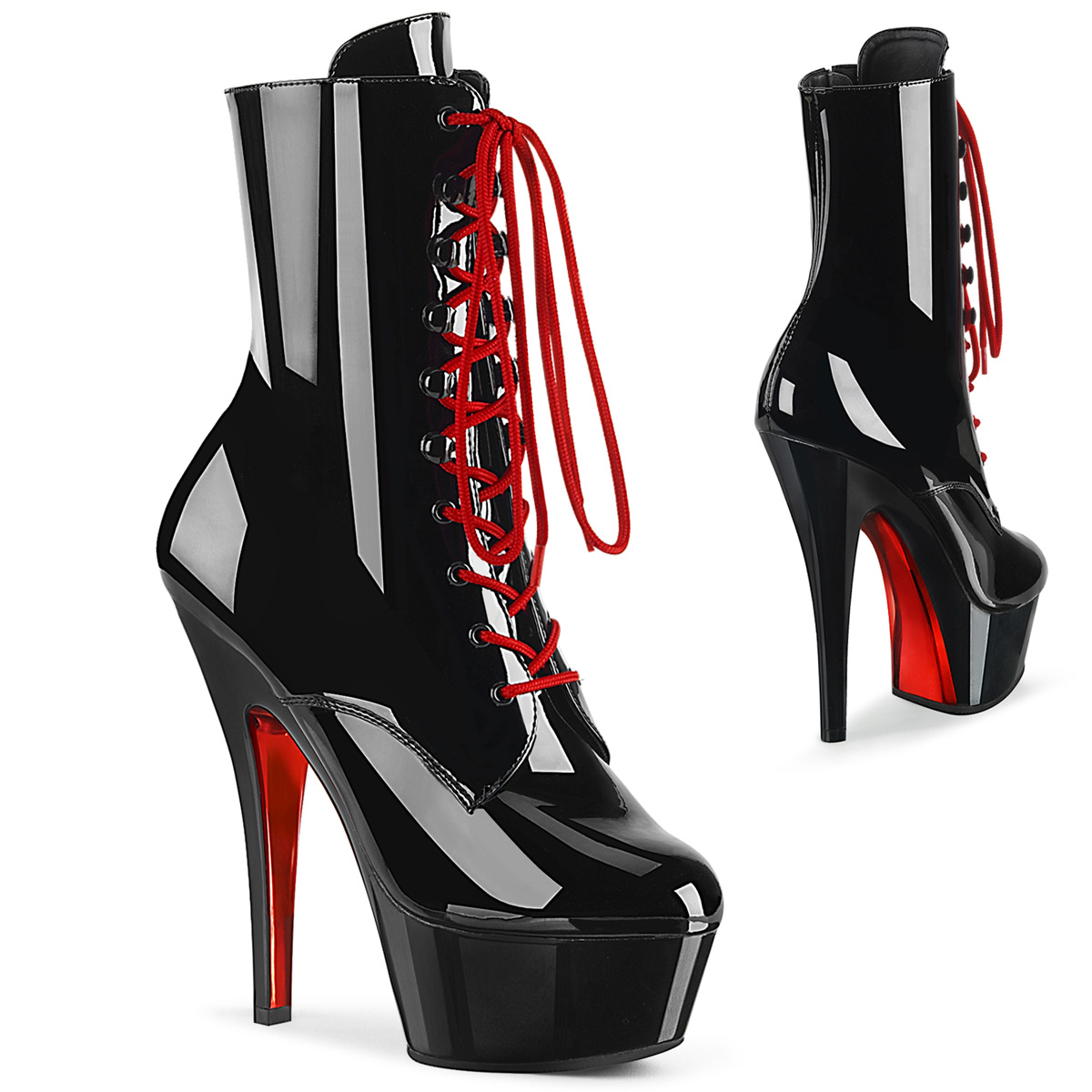 Błyszczące czarne buty za kostkę na platformie z wysokimi obcasami