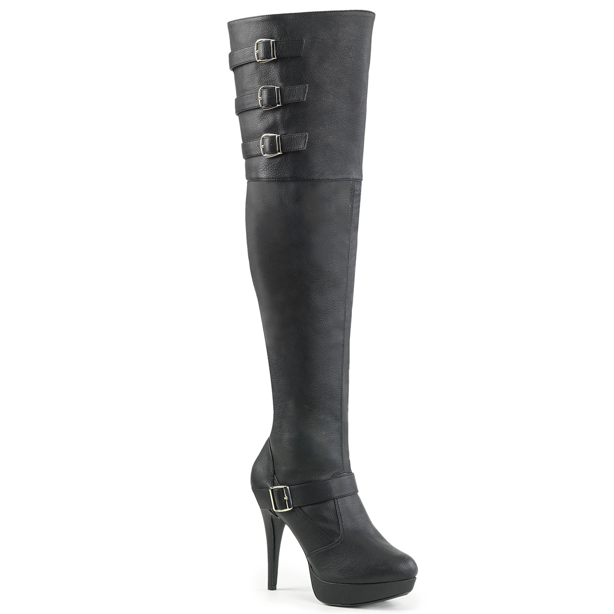 Czarne kozaki za kolano na platformie z wysokimi obcasami
