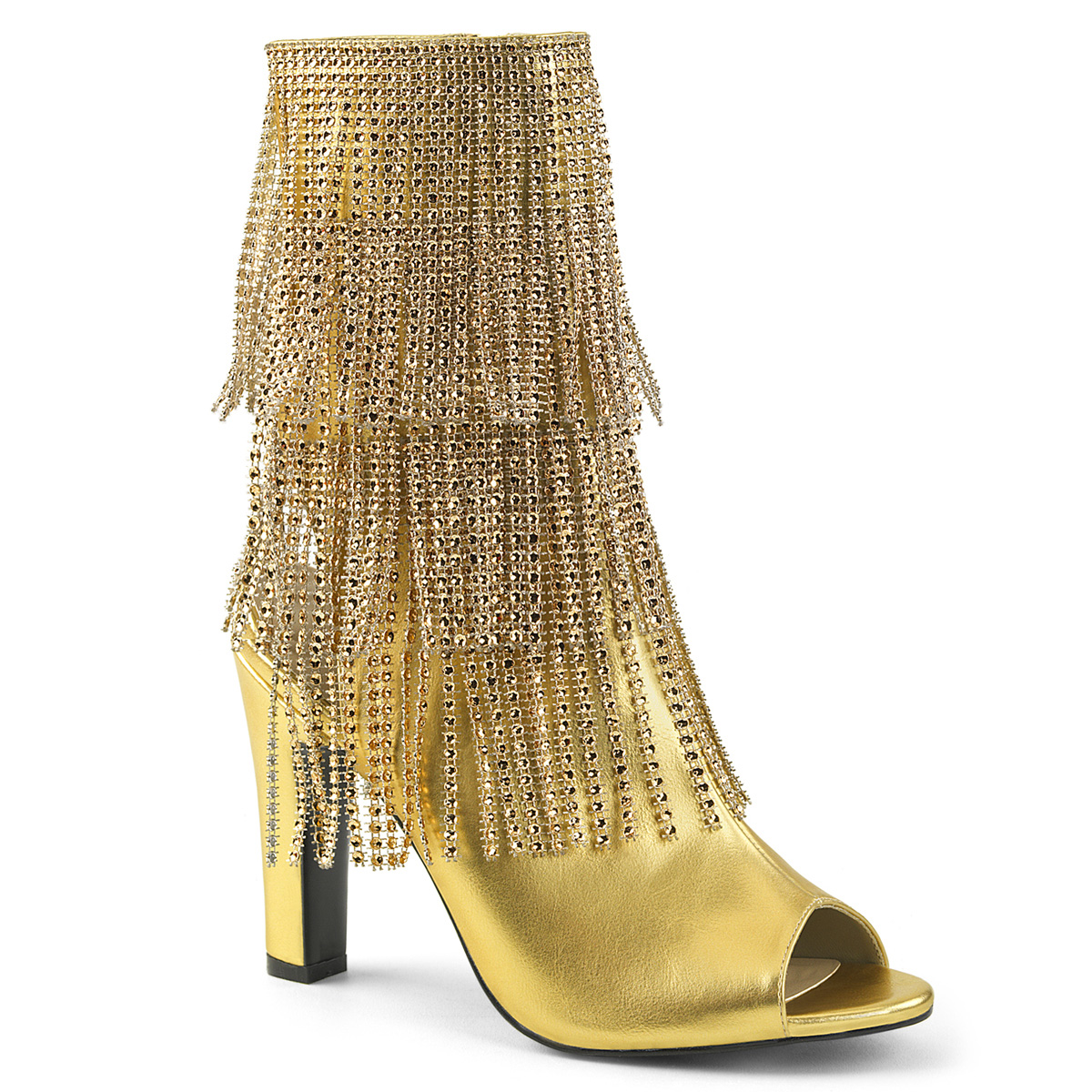 Złote buty za kostkę z wysokimi szerokimi obcasami